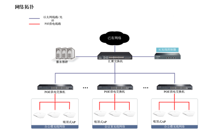 辦公職員通過(guò)無(wú)線網(wǎng)絡(luò)可以在辦公區(qū)內(nèi)隨時(shí)地接入企業(yè)內(nèi)部網(wǎng)絡(luò)和Internet,來(lái)完成各種業(yè)務(wù)工作的處理。另外WLAN網(wǎng)絡(luò)解決以往的有線端口接入限制、硬件維護(hù)工作繁瑣、線路多、可移動(dòng)性弱等問(wèn)題,對(duì)企業(yè)網(wǎng)絡(luò)管理人員也是一個(gè)實(shí)質(zhì)性的變革。